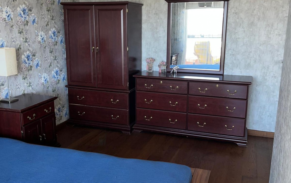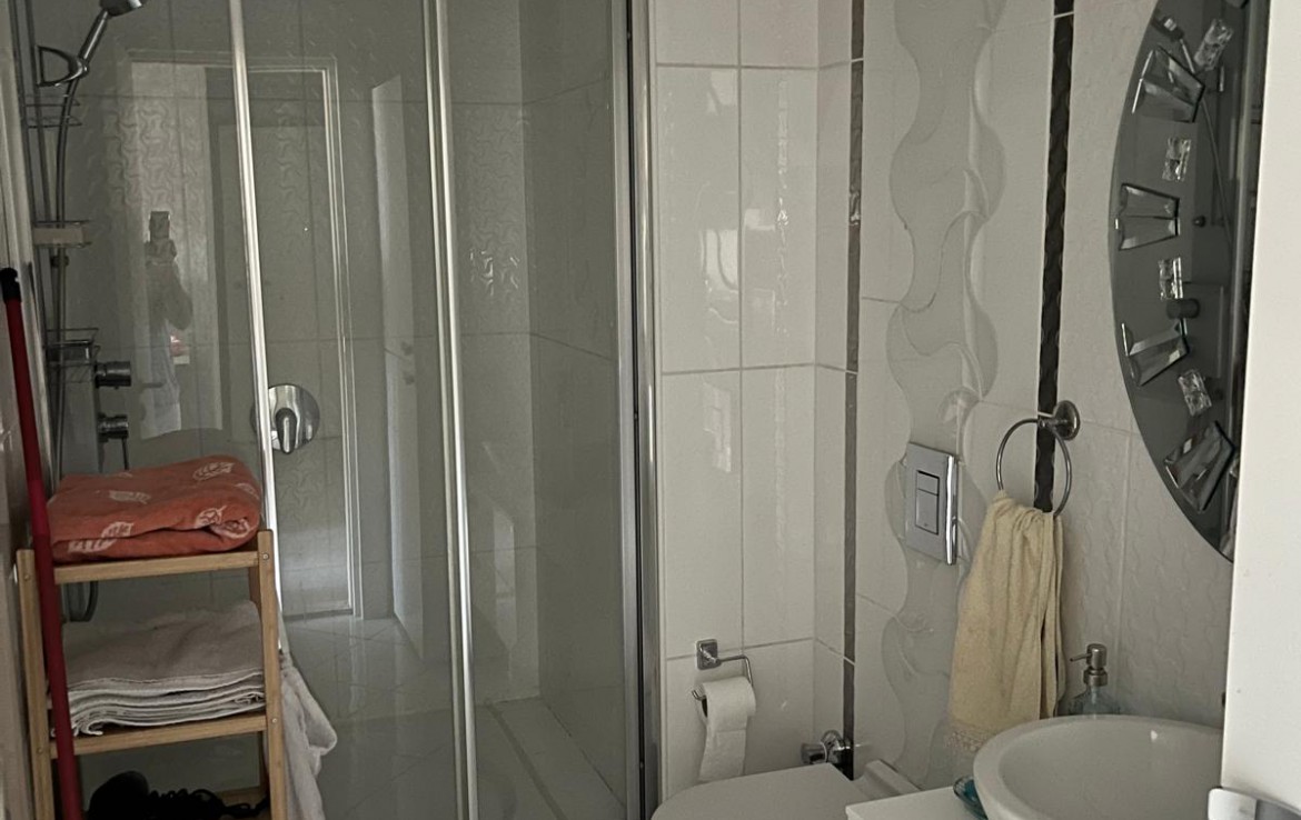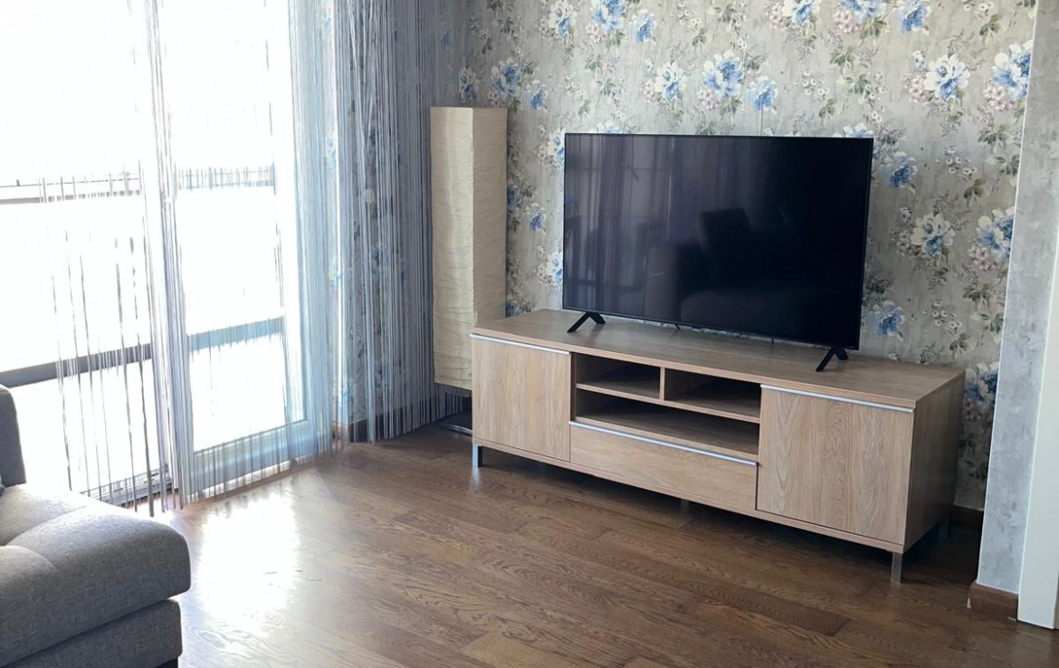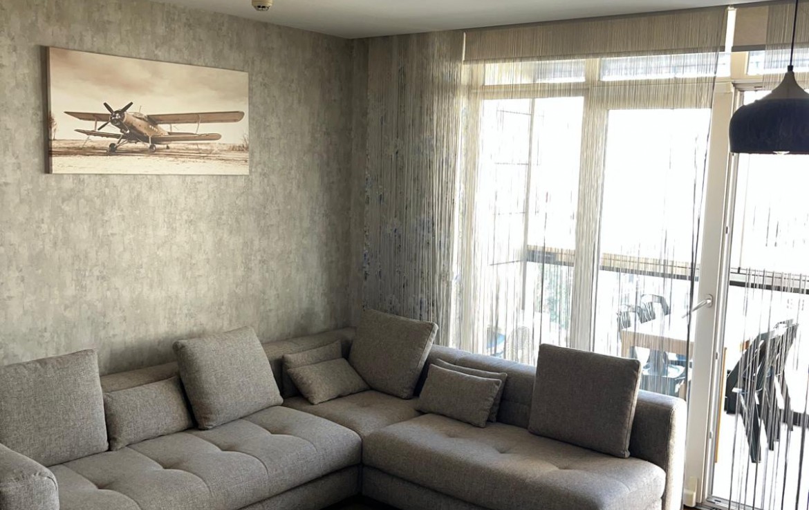 Eşyalı Kiralık Daire 1+1, brüt 90 m2, net 63 m2 alana sahiptir. 21 Katlı bloğun 3. katında yer almaktadır. Kuzey cepheli dairenin girişinde çelik kapı, görüntülü çok fonksiyonlu diafon ve portmanto bulunmaktadır. Klimalı salonun önünde yer alan geniş balkon katlanır cam ile kapatılmış olup yaz, kış kullanılmaktadır. Fonksiyonel mutfakta ankastre ürünler, 6 kişilik temel yemek malzemeleri bulunmaktadır. Koridordaki genel banyoda çamaşır makinesi bulunmaktadır. Oda da çift kişilik karyola, gardrop ve şifonyer yer almaktadır.