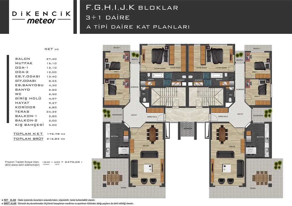 • Brüt Alan: 220 m2