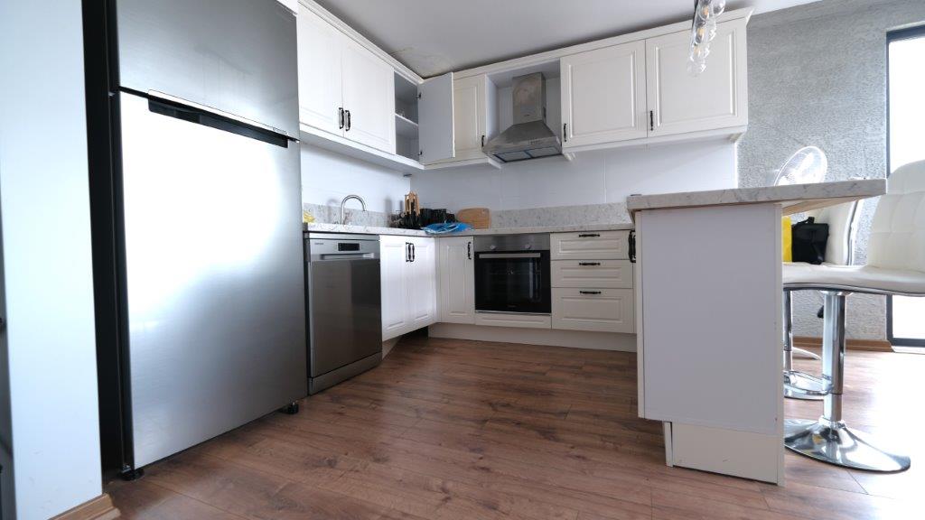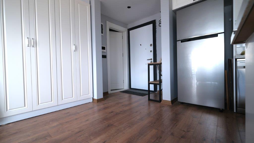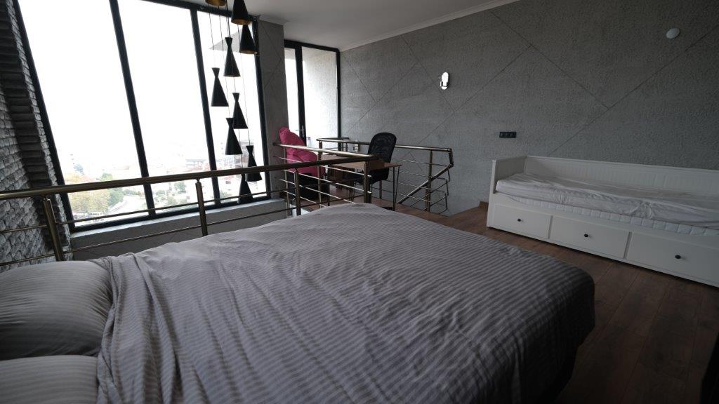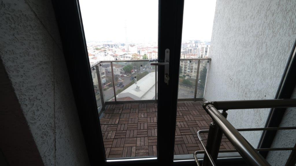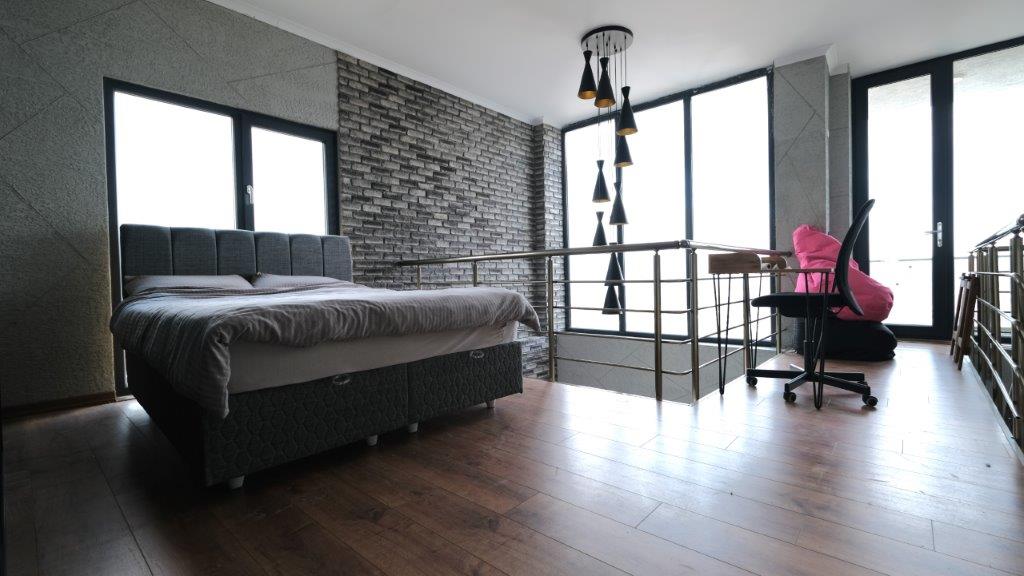 Eşyalı Kiralık Daire ; 13 katlı bloğun son katındaki loft daire dubleks olup net 70 m2, brüt 100 m2 alana sahiptir. Kuzey ve Doğu yönlere cephe olan Loft daire köşe konumludur. Dairenin giriş katında açık mutfaklı salon, wc ve balkon, dubleks katında yatak odası, banyo ve balkon bulunmaktadır. Mutfakta ankastre ocak, fırın, davlumbaz, bulaşık makinesi, buzdolabı, yeterli sayıda çatal, bıçak, tabak, çanak çömlek, girişte portmanto bulunmaktadır. Salonda L koltuk, tv, çalışma masası ve sandalyesi, dubleks katında gardrop, çift kişilik karyola, tek kişilik karyola , çalışma masası ve sandalyesi, kitaplık, iki adet puf, banyoda çamaşır makinesi vardır. Her iki kattaki manzara özellikle geceleri nefistir.