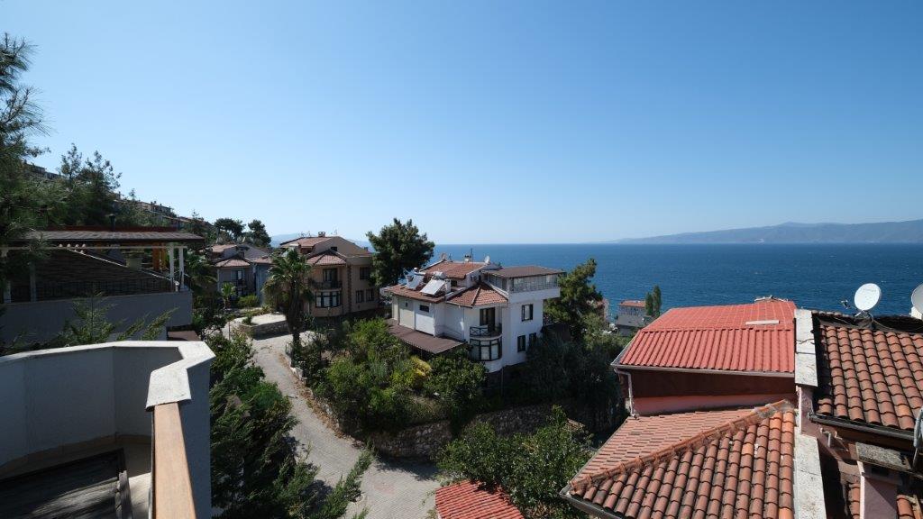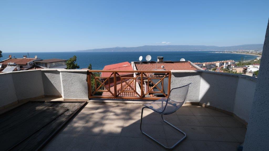 SATILIK VİLLA ;Net 80 m2 tabanlı bina 4 kat olup brüt 340 m2 net 270 m2 alana sahiptir. Villanın her katında deniz manzarası bulunmakta olup çatı katındaki teras kaptan köşkü ayarında olup kesintisiz Kurşunlu sahilini baştan sona izlemek mümkündür. Bahçe Katında; veranda, salon – açık mutfak, oda ve banyo, Giriş Katında ; Salon, mutfak, wc ve balkon. Birinci Katta; Üç oda, ikisi balkonlu ve ikisi deniz manzaralı ve ortak banyo, Çatı Katında tavanı lambiri kaplı, deniz tarafına penceresi bulunan bir oda ile geniş teras yer almaktadır. Teras üstü panel ile kapatılmış olup manzara M U H T E Ş E M dir.