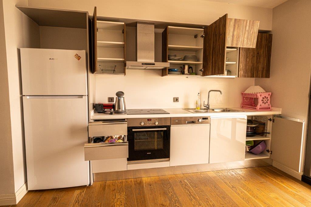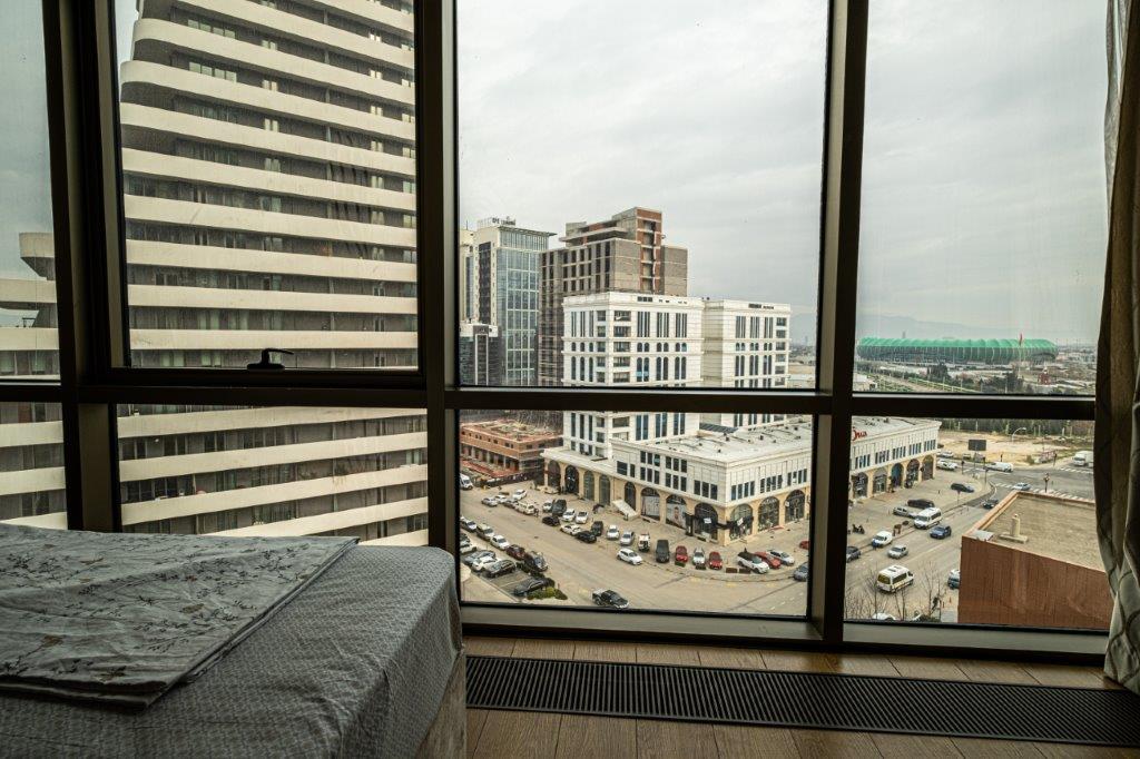 Kiralık Daire 1+1, A tipi olup brüt 80 m2, net 55 m2 alana sahiptir. 14 Katlı bloğun 6. katında yer almaktadır. Blokta her katta 9 adet daire, çift merdiven, 4 yolcu, 2 yük asansörü bulunmaktadır. Klima dış üniteleri dairenin dışındaki ortak balkonda yer almaktadır. Daire kuzey doğu yönüne bakmaktadır. Salon ve balkonu Harmony Tower ve Kızılay binalarına, Yatak odası Timsah Arena ve Sheraton’ a bakmaktadır. Dairenin girişinde çelik kapı, görüntülü ve çok fonksiyonlu diafon bulunmaktadır. Açık mutfakta ankastre ürünler, Bursa manzaralı balkon, banyoda lüks ve kalitenin gereği, zeminden giderli ve cam duşakabinli duş, gömme rezervuar, çamaşır makinesi dolabı bulunmaktadır. Bilhassa geceleri Timsah Arena, Sheraton otel ve yeşillik manzaralı yatak odasındaki manzarayı doya doya seyredeyim derseniz muhtemelen uykular kaçabilir. Daire eşyalı olup kap kacak, ütü, çamaşır makinesi, çatal, bıçak, tabak, bardak gibi tüm eşyalar bulunmaktadır.